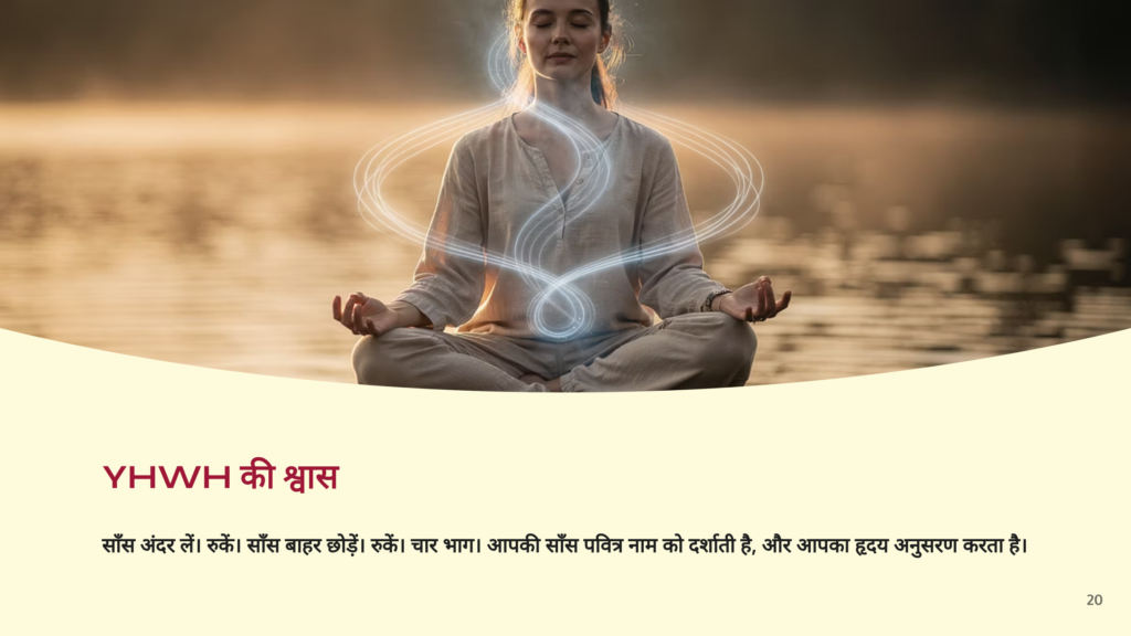 सांस के लिए शब्द –आत्मा (नेशामा)— इसमें एक जेमेट्रिया मान है जो दिव्य नामों से काफी मेल खाता है, जो यह सुझाव देता है कि हर साँस में परमेश्वर की आत्मा का कंपन होता है। जब आप सांस लेते हैं, तो आप सचमुच YHWH की ध्वनि को प्रतिध्वनित करते हैं – याह (श्वास लेना)… वेह (श्वास छोड़ना)— दिव्य जीवन की लय.
